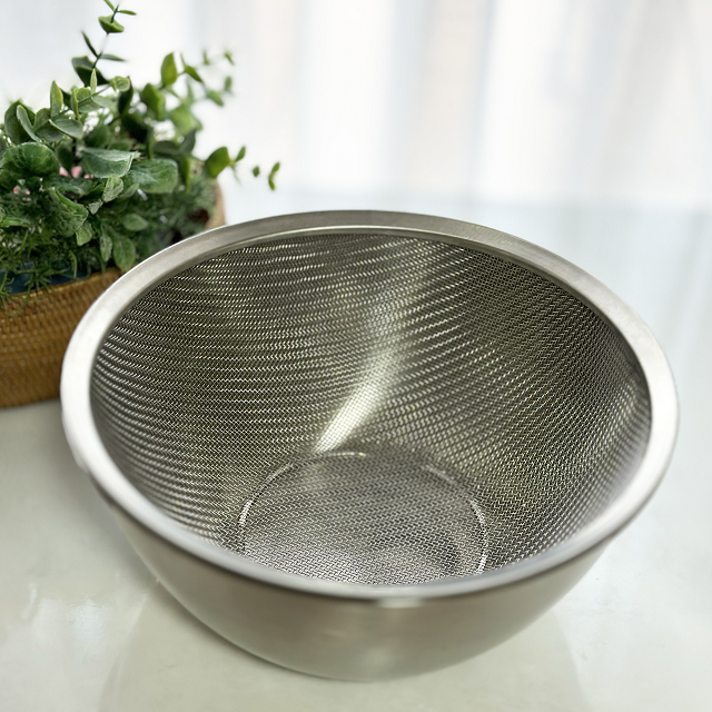 同サイズのボウルと合わせて出汁を濾すときに使ったり、ゆで野菜の水切りに使ったり、用途は様々。