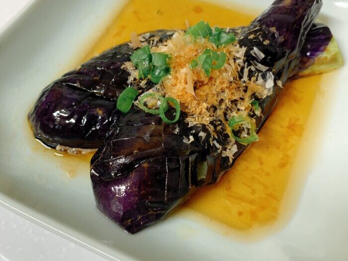 なすは油との相性がいいので、とろ~っと揚がったなすにつゆが染みておいしいです。