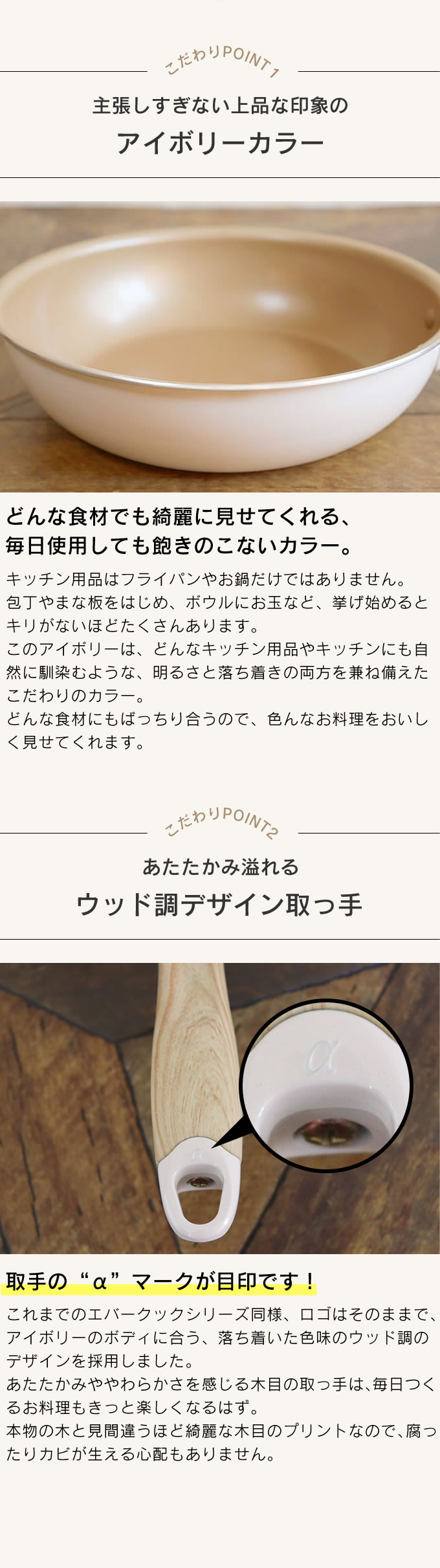 機能性が抜群の上、アイボリーカラーと木の持ち手もオシャレなので